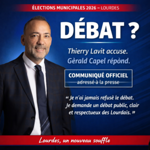Accusé par Thierry Lavit d’avoir refusé un débat public, Gérald Capel tient à apporter une clarification ferme et définitive : il n’a jamais refusé le débat. Dès le départ, Gérald Capel a accepté le principe d’un échange démocratique. Pour lui, le débat est une nécessité dans une élection municipale. Les Lourdaises et les Lourdais ont droit à une information complète, transparente et approfondie. Une proposition jugée insuffisante En début de semaine, une proposition a été transmise : un débat organisé à Pau, dans les studios d’« Ici Béarn Bigorre », sur un format d’environ quinze minutes, avant 8 heures du matin. Pour Gérald Capel, ces conditions ne permettent pas un véritable débat de fond. Quinze minutes ne suffisent pas pour …